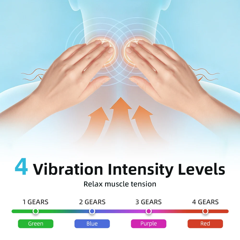3. This electric cervical massager has 4 vibration levels to precisely match your muscle tension and relaxation needs throughout the day.
