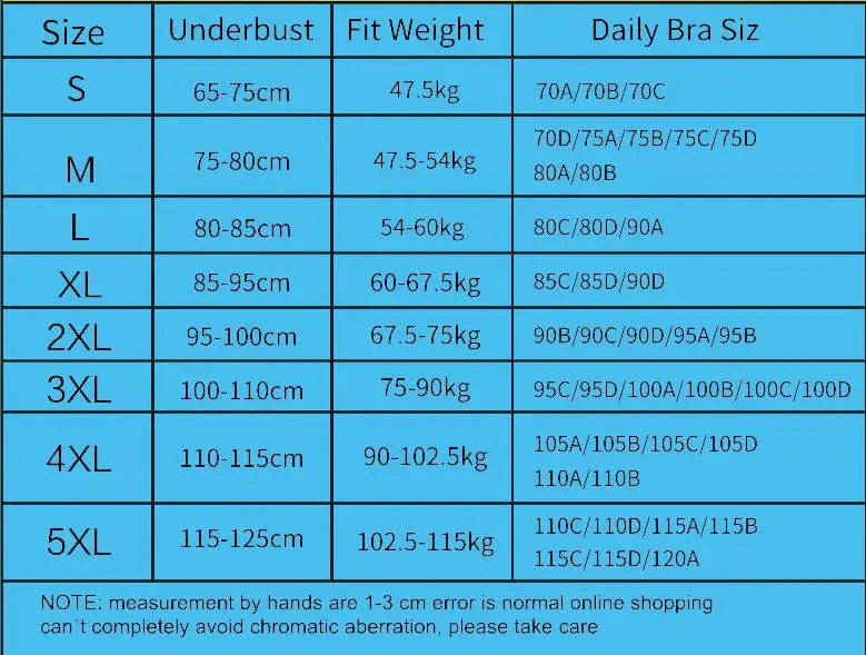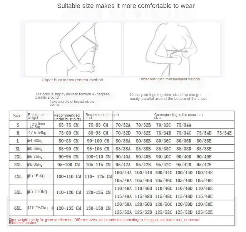 - Size:M / L / XLSize M:Bust 65-80cm/25.6-31.5in; Recommend Cup 32A/70A,32B/70B,32C/70C,32D/70D,34A/75A,34B/75BSize L:Bust 80-90cm/31.5-35.4in; Recommend Cup 34C/75C,34D/75D,36A/80A,36B/80B,36C/80CSize XL:Bust 90-100cm/35.4-39.4in; Recommend Cup 36D/80D,38A/85A,38B/85B,38C/85C,38D/85D